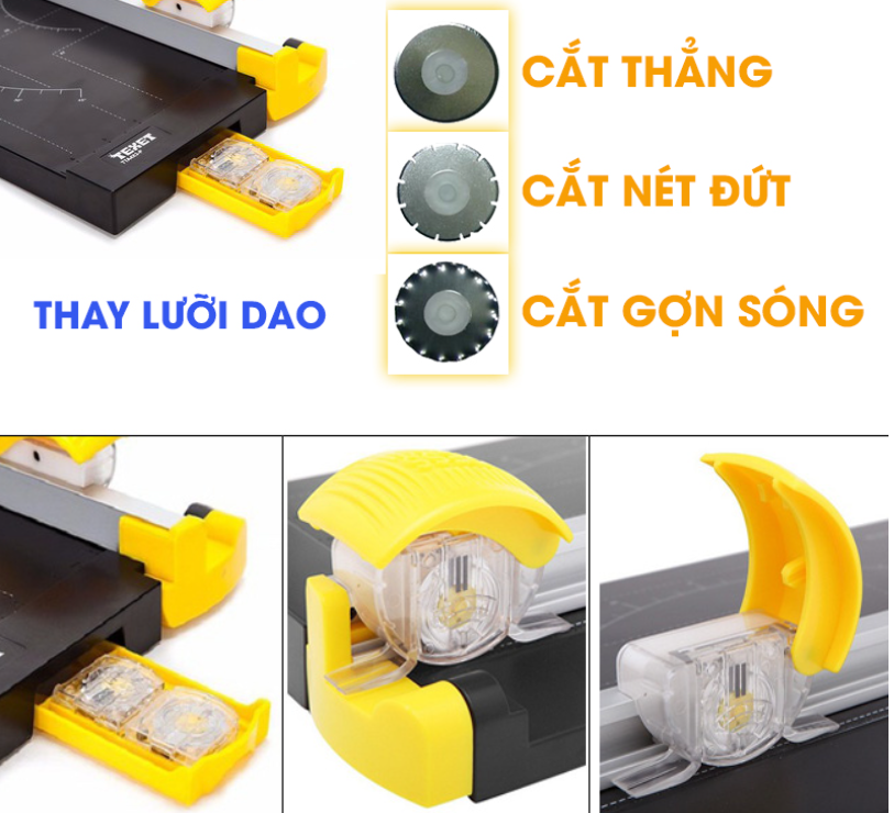 Lưỡi dao cắt giấy với các đường gạch ngang, đường thẳng, đường lượn sóng siêu sắc nét và các đường cắt nhẹ nhàng để có các đường cắt chính xác, sạch sẽ và đều đặn. Đặc biệt bàn cắt giấy Texet A4 dễ dàng tháo rời và lắp ráp, thiết kế đơn giản mang đến sự tiện lợi cho người sử dụng.