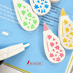 Cách sử dụng vô cùng đơn giản, chỉ cần mở nắp , đặt mặt băng keo nhẹ nhàng lên phần muốn che lấp và kéo nhẹ về tay cầm, để 30s để băng khô hẳn là các bạn có thể viết đè lên được rồi. Khi hết keo, các bạn có thể mua riêng keo để thay vào mà không cần mua cái mới.