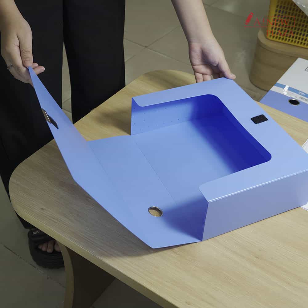 1. Độ Bền Vượt Trội: Chất liệu nhựa PP không chỉ đảm bảo tính dẻo dai, mà còn chống chịu tốt trước sự ảnh hưởng của thời tiết và môi trường làm việc. Bạn có thể tin tưởng vào bìa hộp để bảo vệ tài liệu quan trọng của mình.