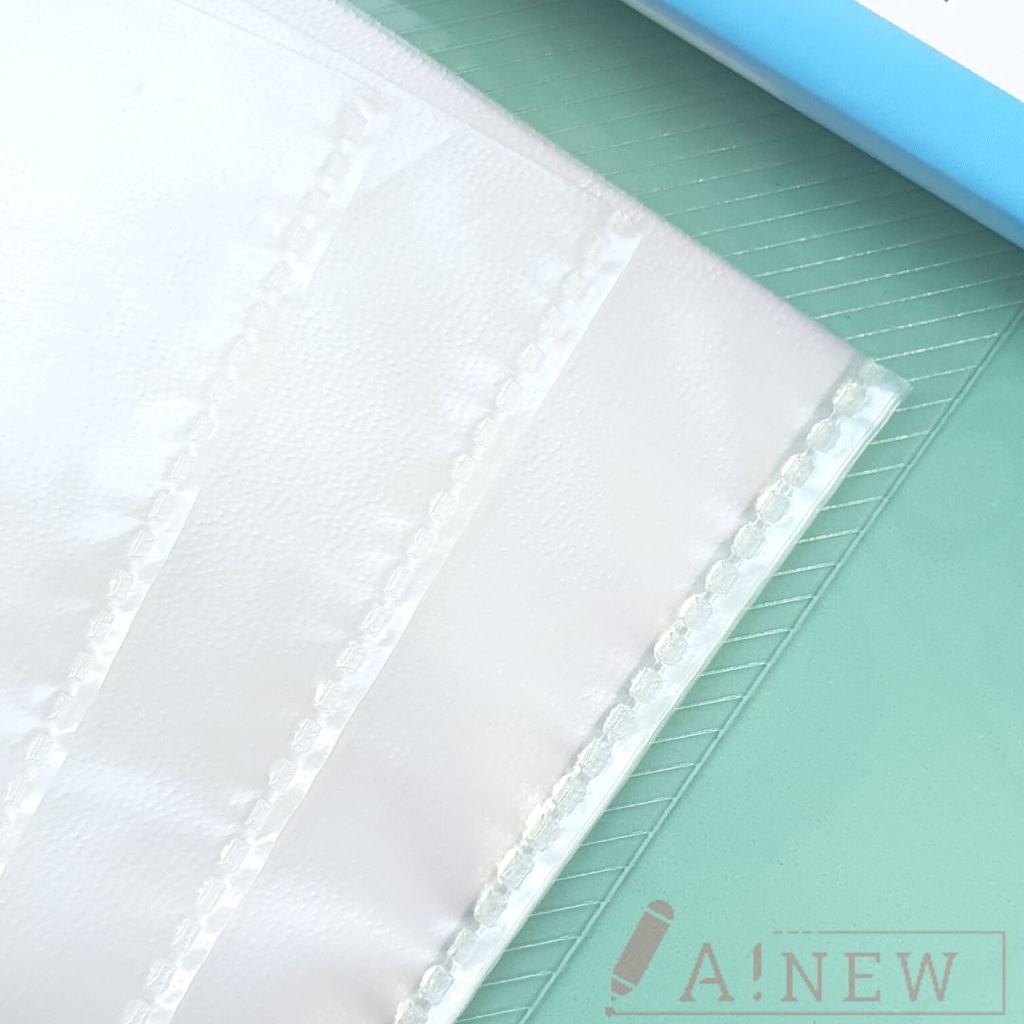 Bìa cứng trong suốt chắc chắn, có vân xéo giúp việc cầm nắm dễ dàng hơn. Các góc bìa được bo tròn, tránh bị thương khi sử dụng.