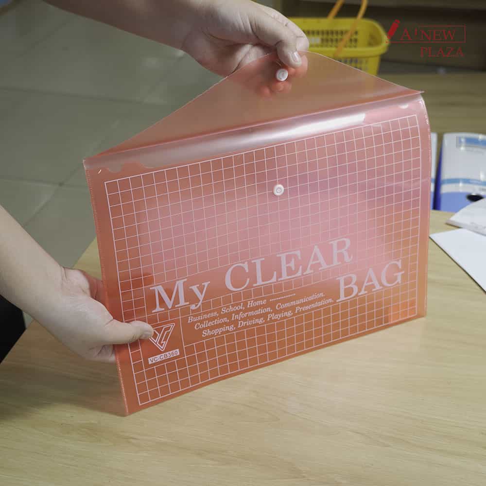 Bìa Nút F4 VCORD CB360 Nhựa Dẻo có cấu tạo nút cài chắc chắn, Chất liệu nhựa PS trong suốt, dẻo, chất lượng, Dùng để lưu trữ giấy tờ, hồ sơ, tài liệu học tập, hoặc mang đi học thêm một cách thoả mái, rộng rãi