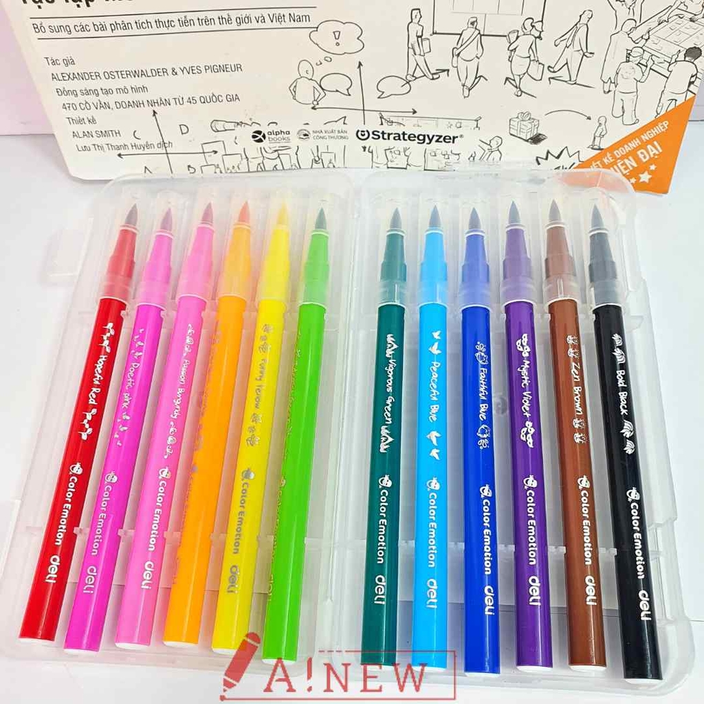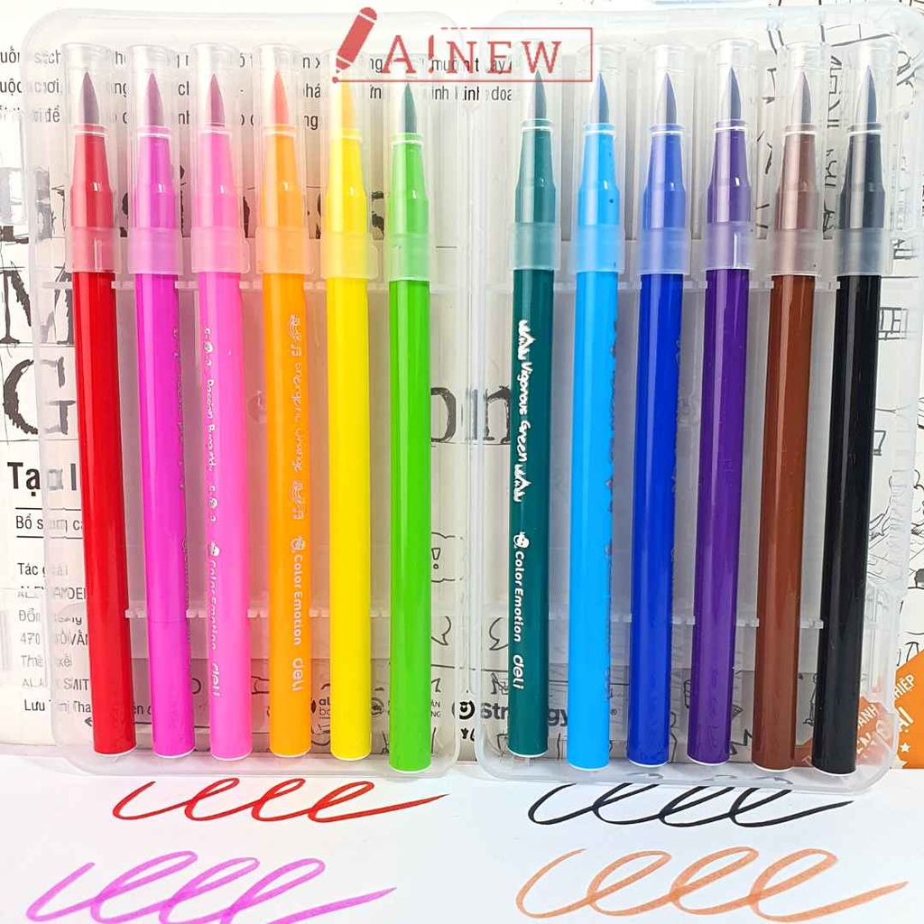 Bộ bút lông dạ 12 màu - Bút màu đầu Brush - Felt Pen Deli C1030 04