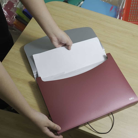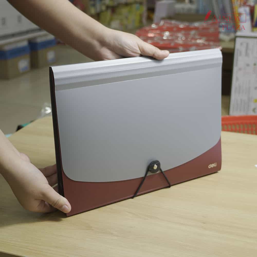 Cặp Đựng Tài Liệu Deli 7 ngăn 38151, kiểu dáng sang trọng, rất đẹp, không có quai sách, nút cài bằng dây, chất liệu nhựa dẻo ps cao cấp dày, rất chắc chắn. Có tap phân trong để phân loại hồ sơ, dùng để lưu trữ hồ sơ chứng từ A4 hoặc A5