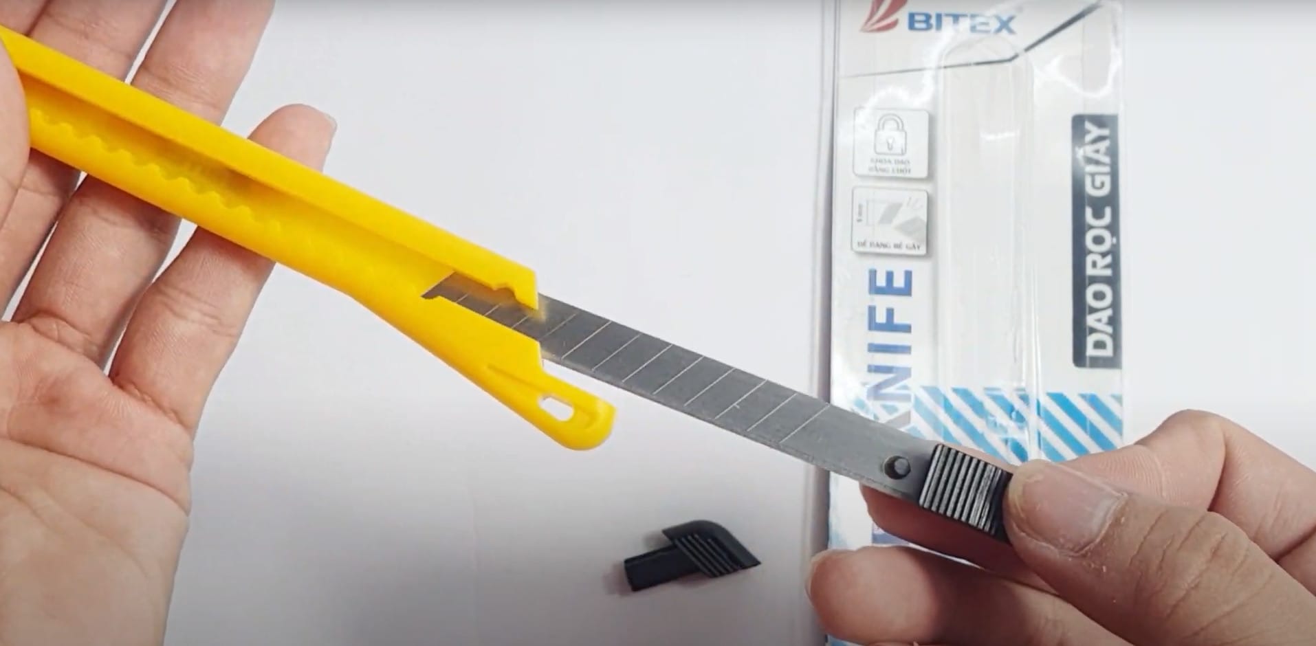 (Xem thêm clip hướng dẫn cách thay lưỡi dao rọc giấy BItex CK01)