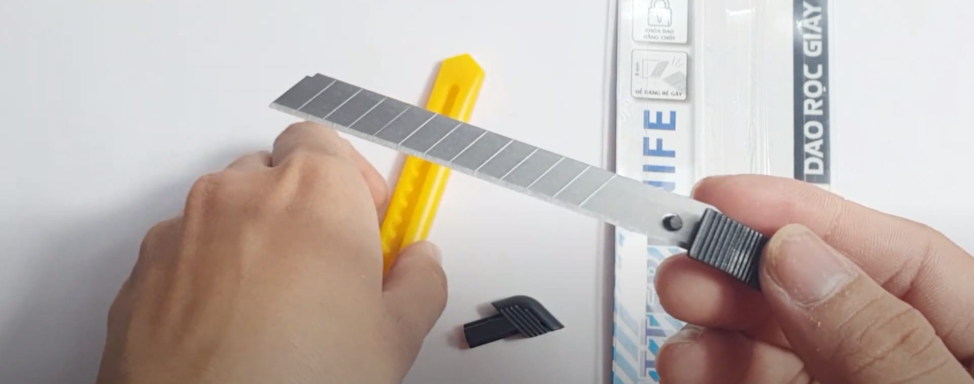 (Xem thêm clip hướng dẫn cách bẻ lưỡi dao rọc giấy này)