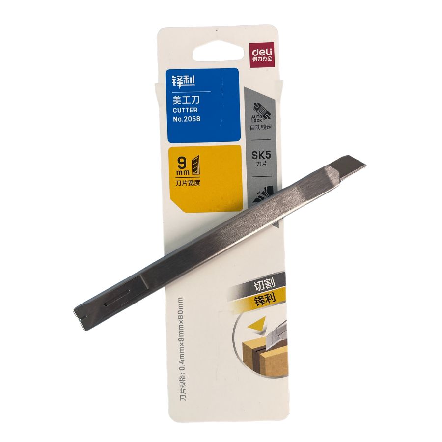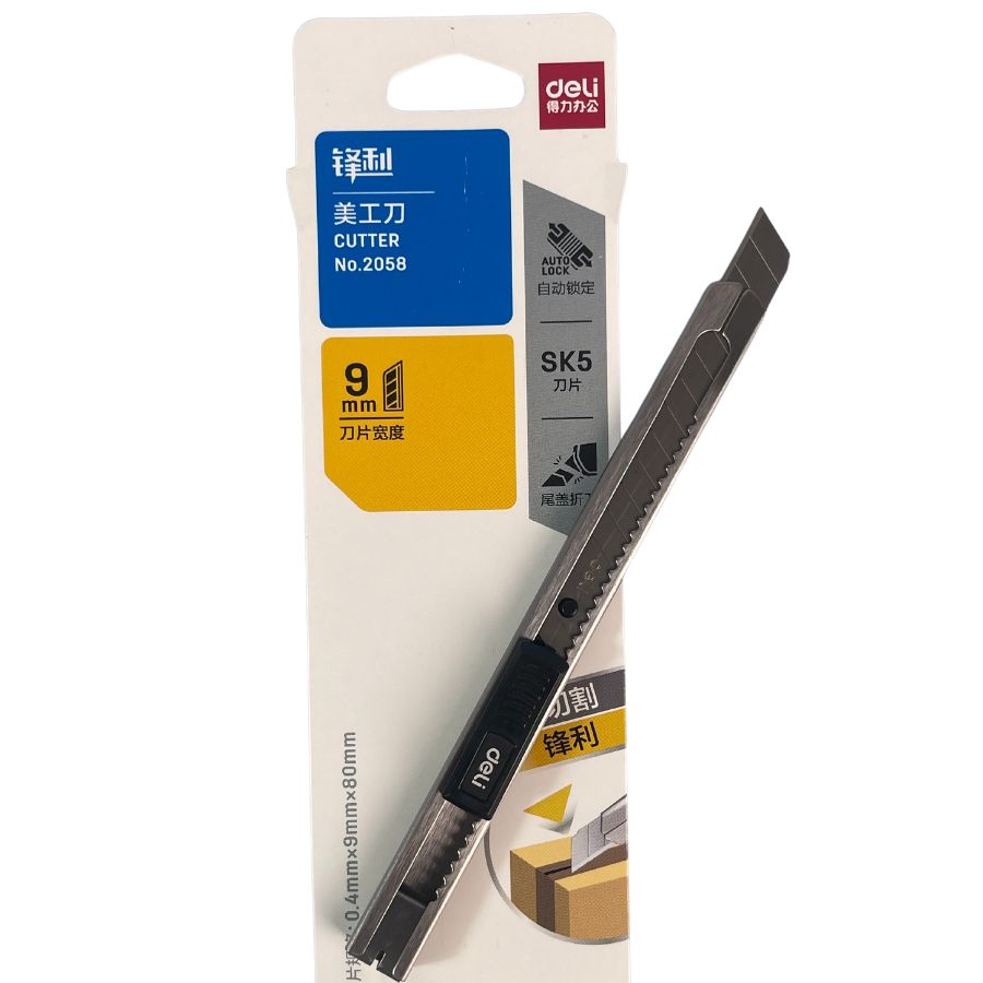 Dao rọc giấy nhỏ thân Inox Deli 2058 bền, sắc, thon gọn