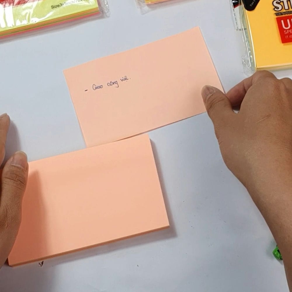 - Màu sắc: mỗi xấp có 5 màu neon, tươi sáng, ấn tượng, tha hò cho bạn sáng tạo