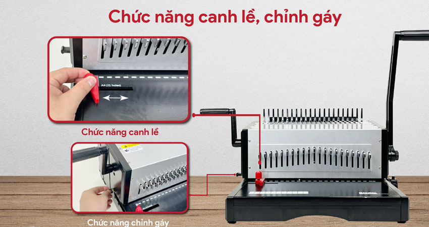 - Đóng gáy: Ấn tay cầm để đóng gáy.