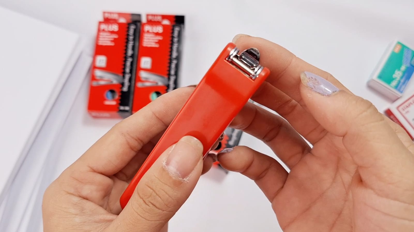 - Chất liệu thân máy bấm: Vỏ nhựa, thân inox bóng sáng