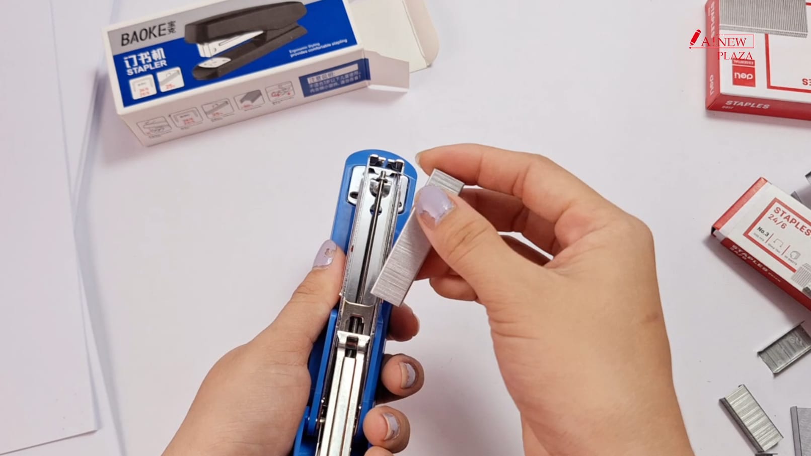 Mời bạn xem thêm video ngắn, hướng dẫn cách tháo lắp ghim máy dập ghim Baoke này nhé
