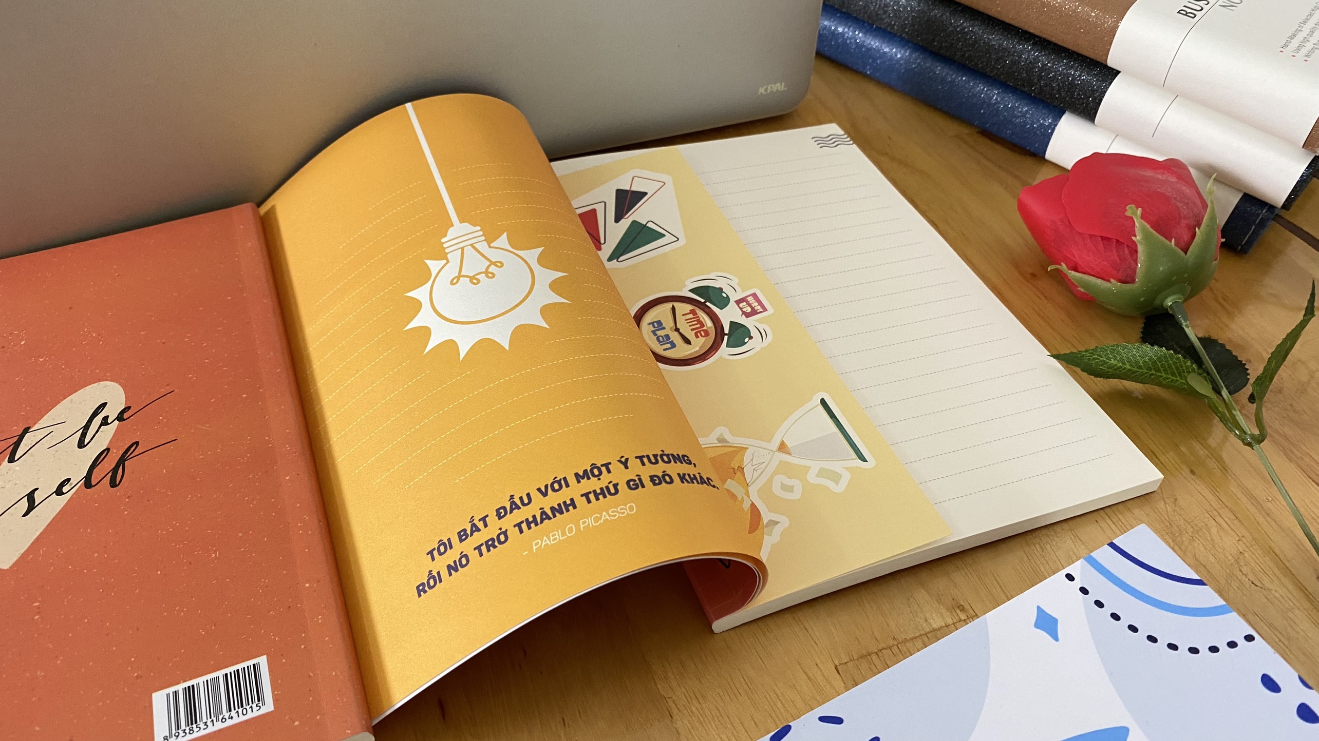 Sổ tay bìa slogan bên mình có thiết kế rất bắt mắt và vô cùng sáng tạo. Đây là một trong những dòng sổ cực kỳ hot.